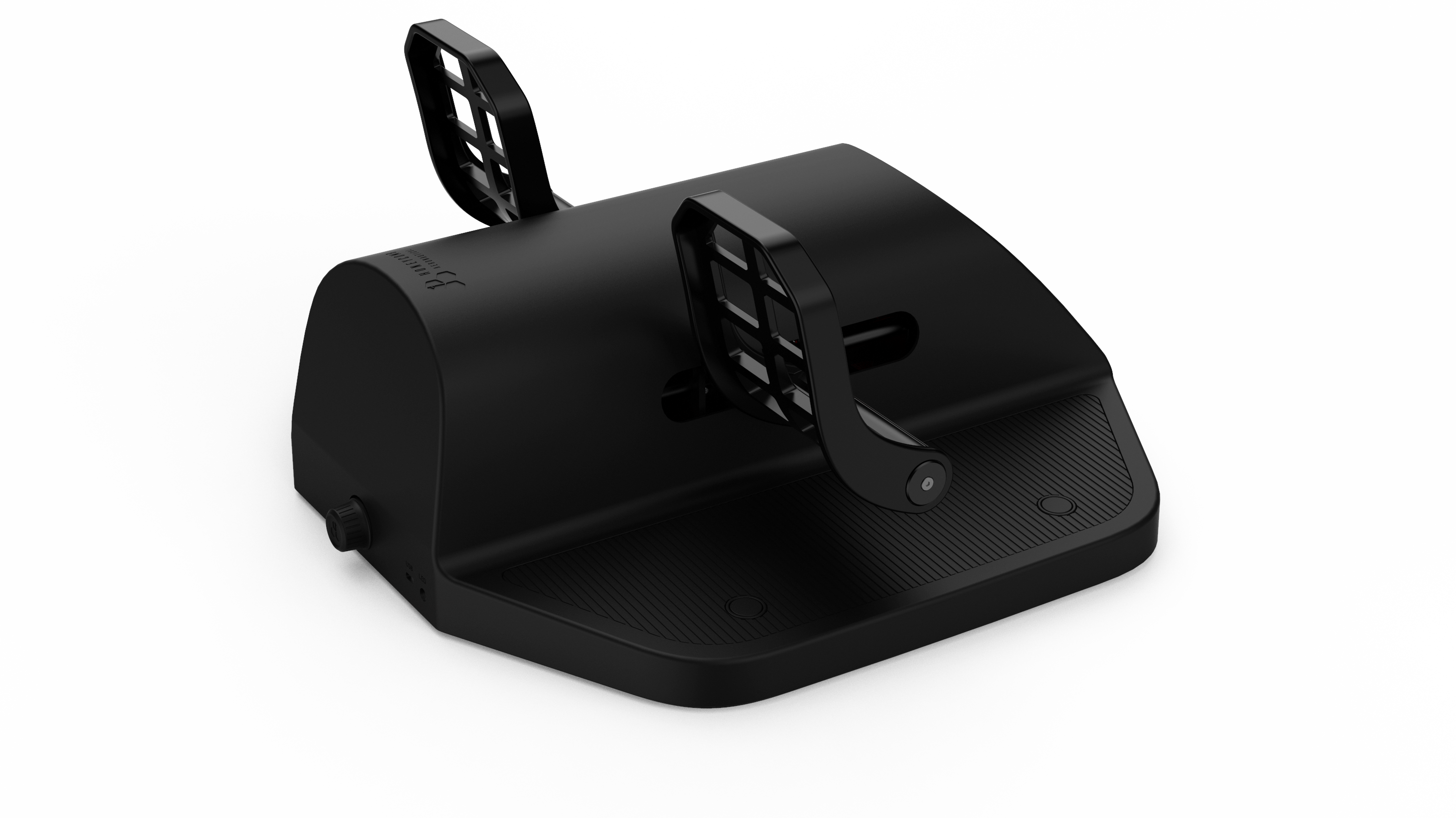 The Charlie Rudder Pedals brings the final piece to complete the full Honeycomb Flight Simulation Setup. The pedals are made with real alloy metal and can adjust to different angles for the best comfort while flying. The pedals use a specialized drive train system for travel with no center detent. The base includes large rubber grip pads and reversible carpet spikes for non-movement use giving you confidence and skill in your approaches and landings.